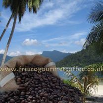 A heavy smooth coffee with an elegant fragrant taste. From the Indonesian island of Sumatra, this full-bodied coffee has an exotic nearly floral taste. The beans are grown on small plots on the shores of Lake Aceh before being picked and semi-dried in the sun. Our Sumatran is dark roasted for a heavy smooth fragrant taste. It is subtle and sweet, reminiscent of figs and apricots and has a complex earthy aroma. An exceptional coffee; serve black to appreciate the nuances of the beans. Strength- Strong Roast (5)